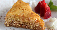 BAKLAVALAYERS OF FILO PASTRY WITH MIXED NUTS AND HONEYGALAKTOMPOURECO Filo pastry, custard, semolina, vanilla with honey & lemon syrupKATAIFIShredded pastry with mixed nuts & honey syrup CHOCOLATE FUDGE CAKEServed hot or cold with ice cream or cream CHEESE CAKEServed with ice cream or creamsticky chocolate & orange cakeServed hot or cold with ice cream or cream YOGHURT & HONEY Greek yoghurt topped with honey and nuts