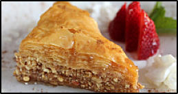 BAKLAVALAYERS OF FILO PASTRY WITH MIXED NUTS AND HONEYGALAKTOMPOURECO Filo pastry, custard, semolina, vanilla with honey & lemon syrupKATAIFIShredded pastry with mixed nuts & honey syrup CHOCOLATE FUDGE CAKEServed hot or cold with ice cream or cream CHEESE CAKEServed with ice cream or creamsticky chocolate & orange cakeServed hot or cold with ice cream or cream YOGHURT & HONEY Greek yoghurt topped with honey and nuts
