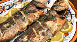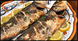 CalamariDeep fried squid in batter.......................................................................................................................................................................16.50SEA BASSSea bass fillet, charcoal grilled...........................................................................................................................................................17.95SOLOMOS Salmon fillet, charcoal grilled..............................................................................................................................................................17.95Garides SkarasCharcoal grilled king prawns................................................................................................................................................................17.95Garides Skordates King prawns in wine & garlic sauce................................................................................................................................................17.95